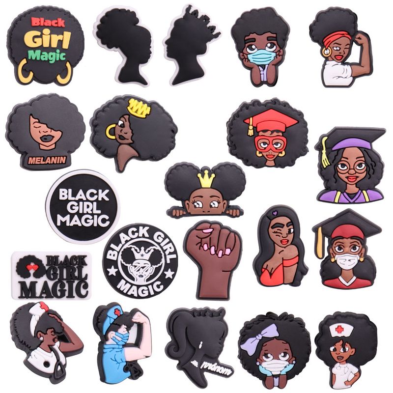 7-51Pcs BLM Girl Power Melanin Black History Month Queen Boy Bye Period PVC Shoe Charms For Clogs Pins Slipper Accessories