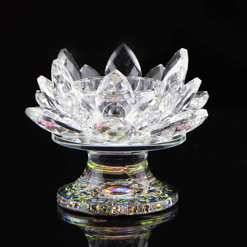 7 colors Crystal Lotus Candlestick Tealight Holders Lotus Flower Figurines Ornament Party Dinner Decor