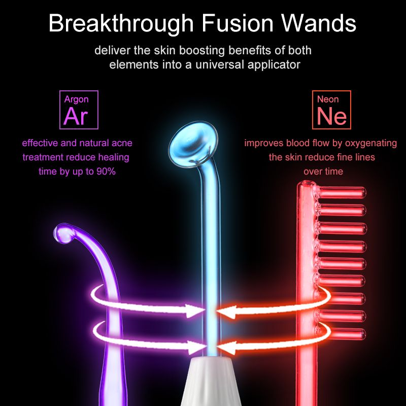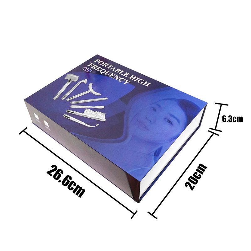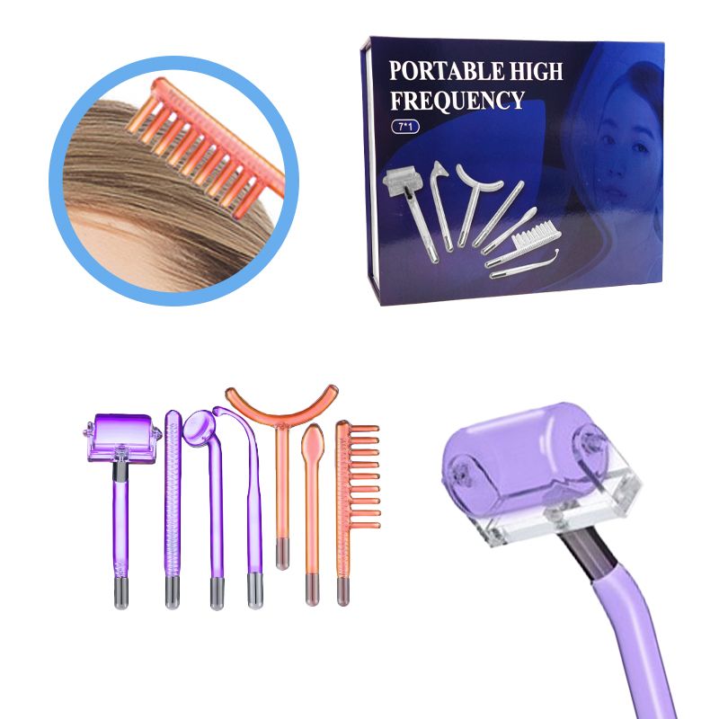 High-frequency electrotherapy beauty instrument electrotherapy tube is filled with Neon/Argon rare gas, which acts on the skin after being energized to produce high-frequency current, this high-frequency current can enhance the basal activity of the skin, improve the texture of the skin, and enhance the defense ability of the skin against bacteria. And due to the formation of ozone, it can effectively sterilize and disinfect, while accelerating skin metabolism, promoting skin secretion of excess oil, balancing oil and moisture, and keeping the skin clean. At the same time the product improves the elasticity of the skin through vibration, so that the skin is tighter, not easy to be propped up, the face has an effective lifting effect. And the beauty instrument and skin contact with a slight heat sensation, can make the nerve excitement value reduced, to achieve a calming effect on the nerves and pain relief. Comb type electric therapy tube through the vibration with the scalp and hair follicles, can effectively stimulate the hair follicles, promote hair growth.