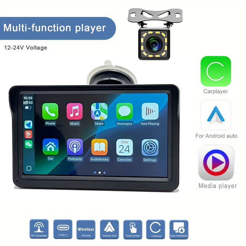 7 Inch HD Car Radio Multimedia Video Player Portable CarPlay Android Touch Screen with USB AUX for Rear View Camera