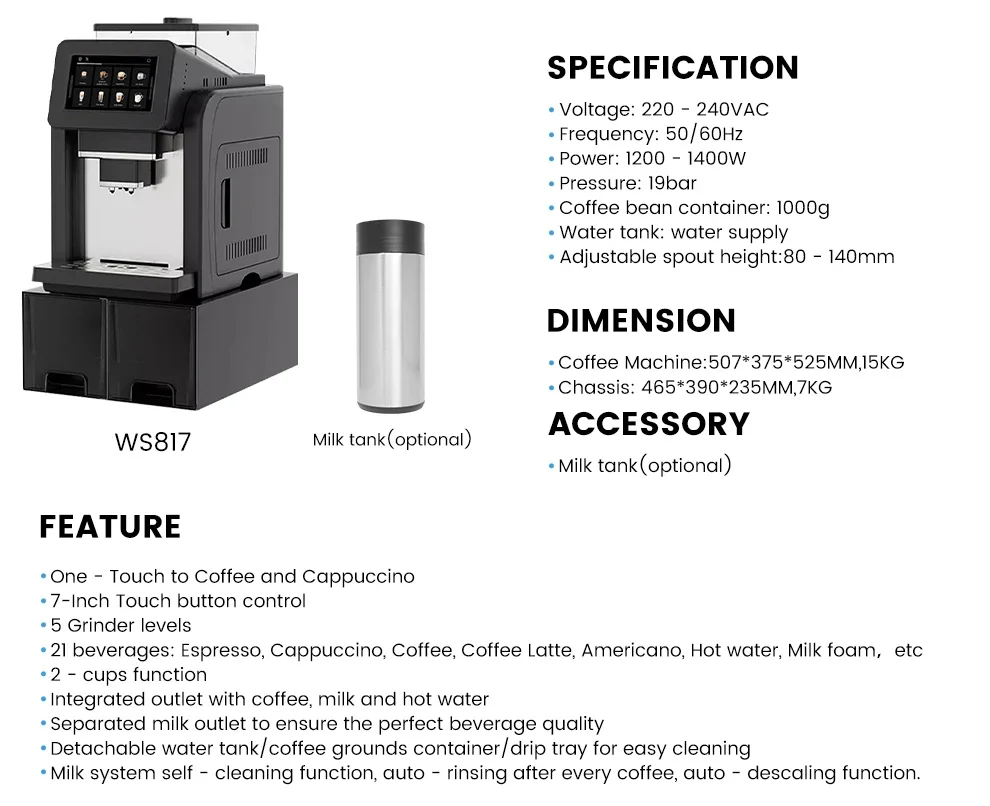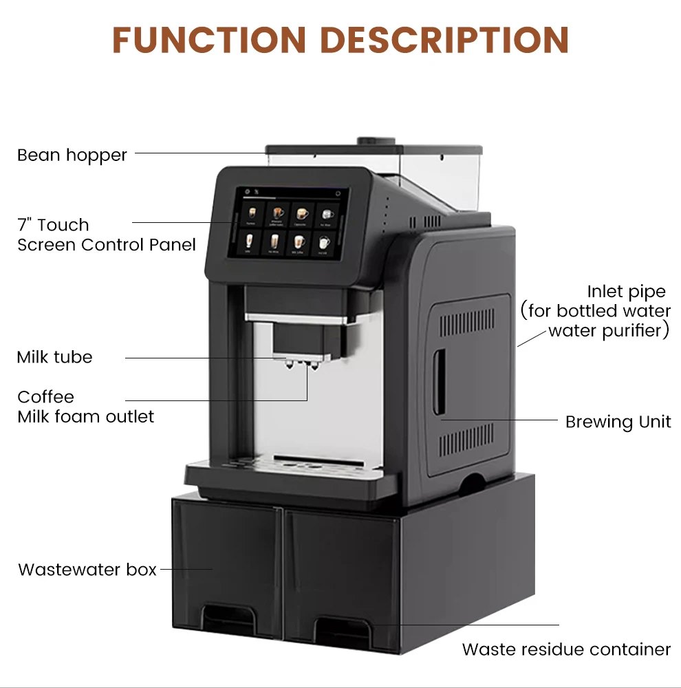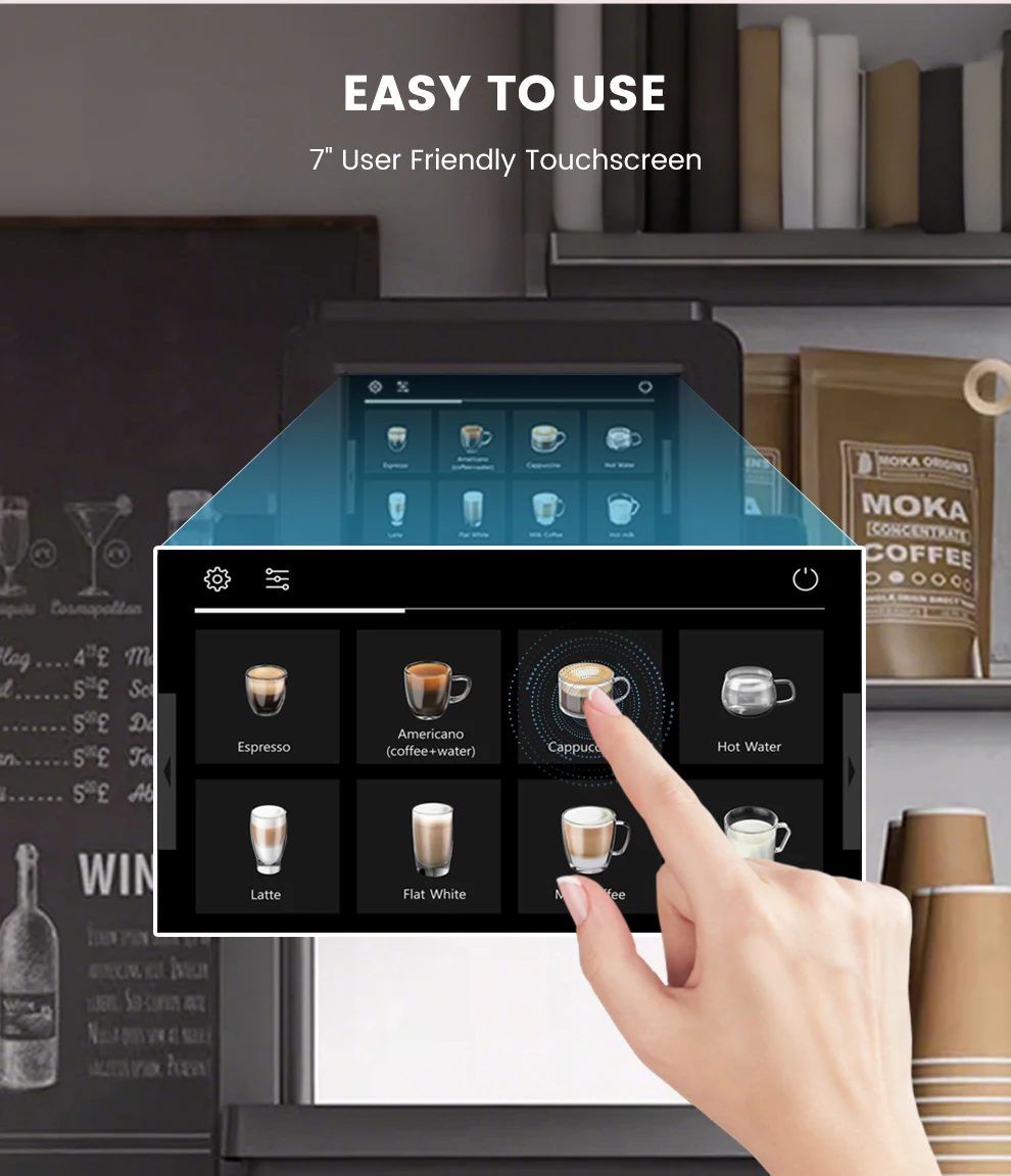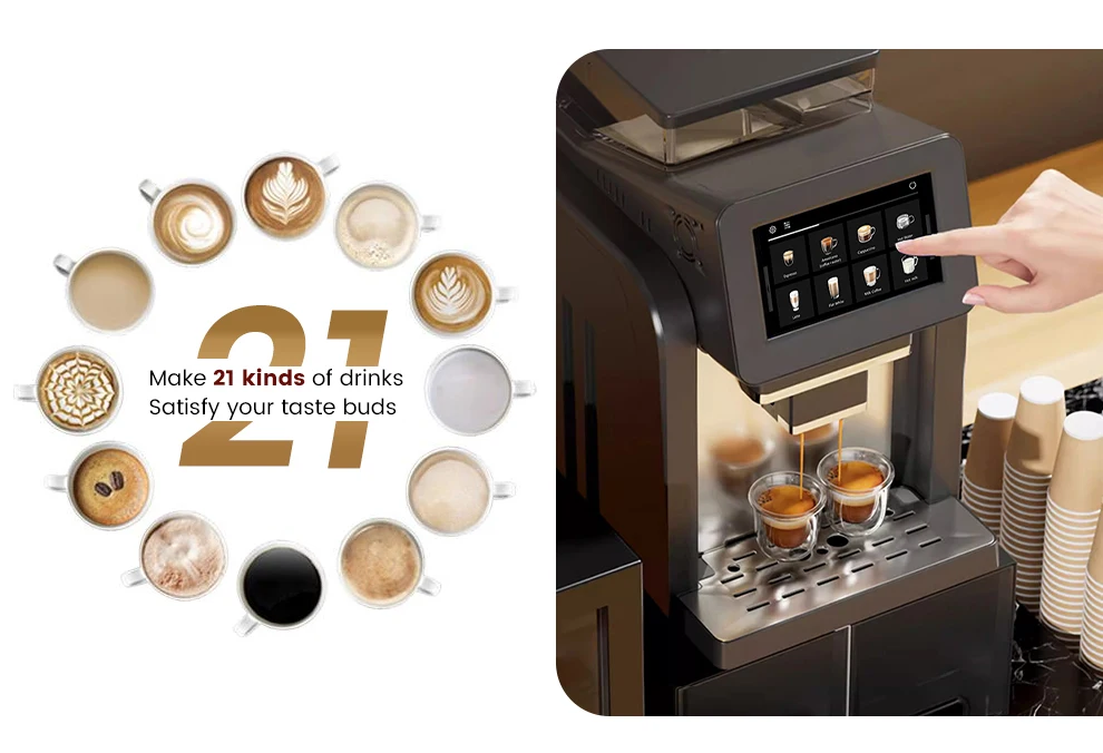 7" Large Screen Automatic Espresso Coffee Machine with Milk Frother, 21 Flavors, Smart Touch for Home & Office
