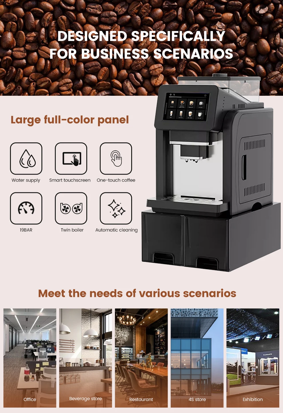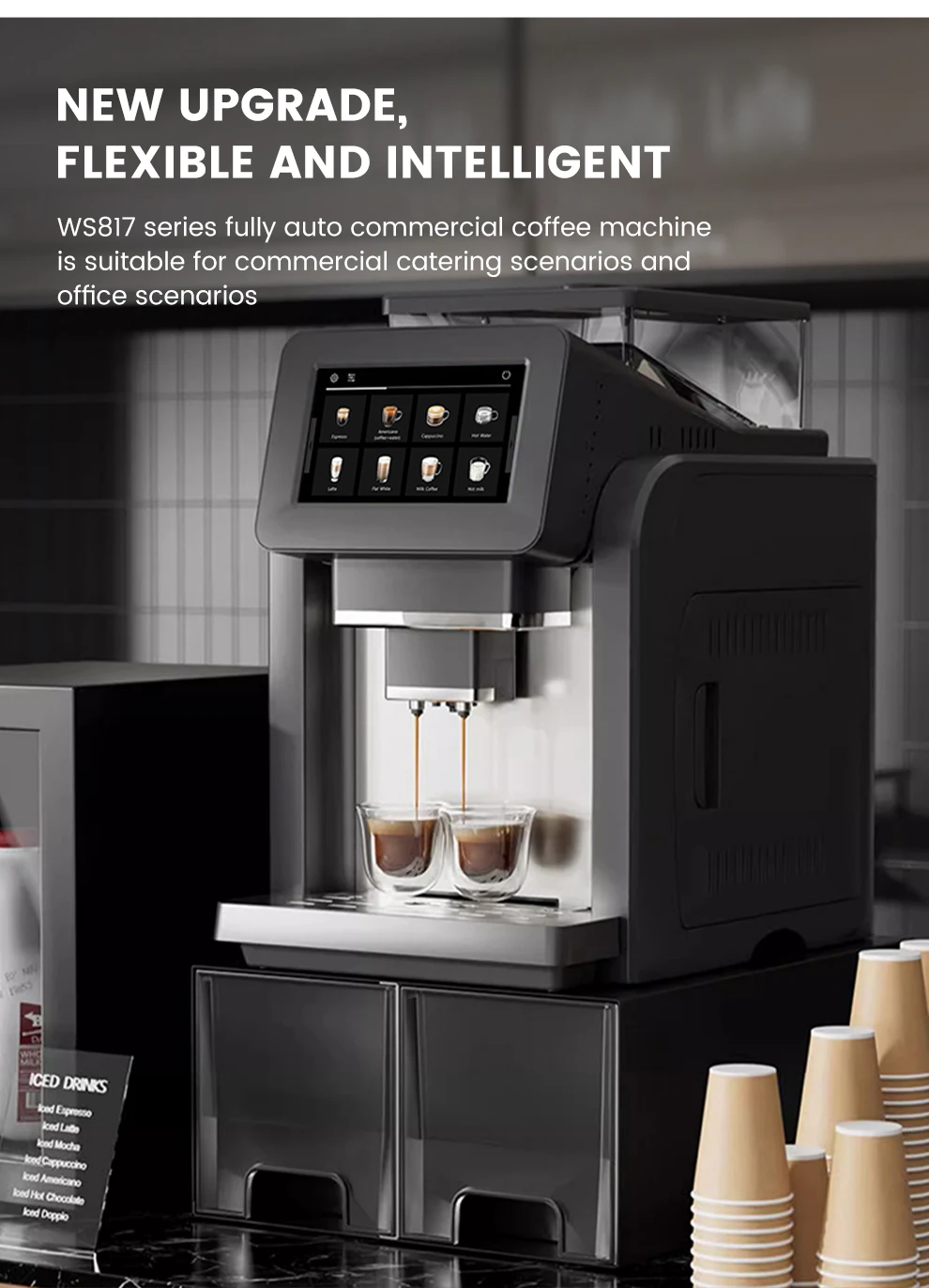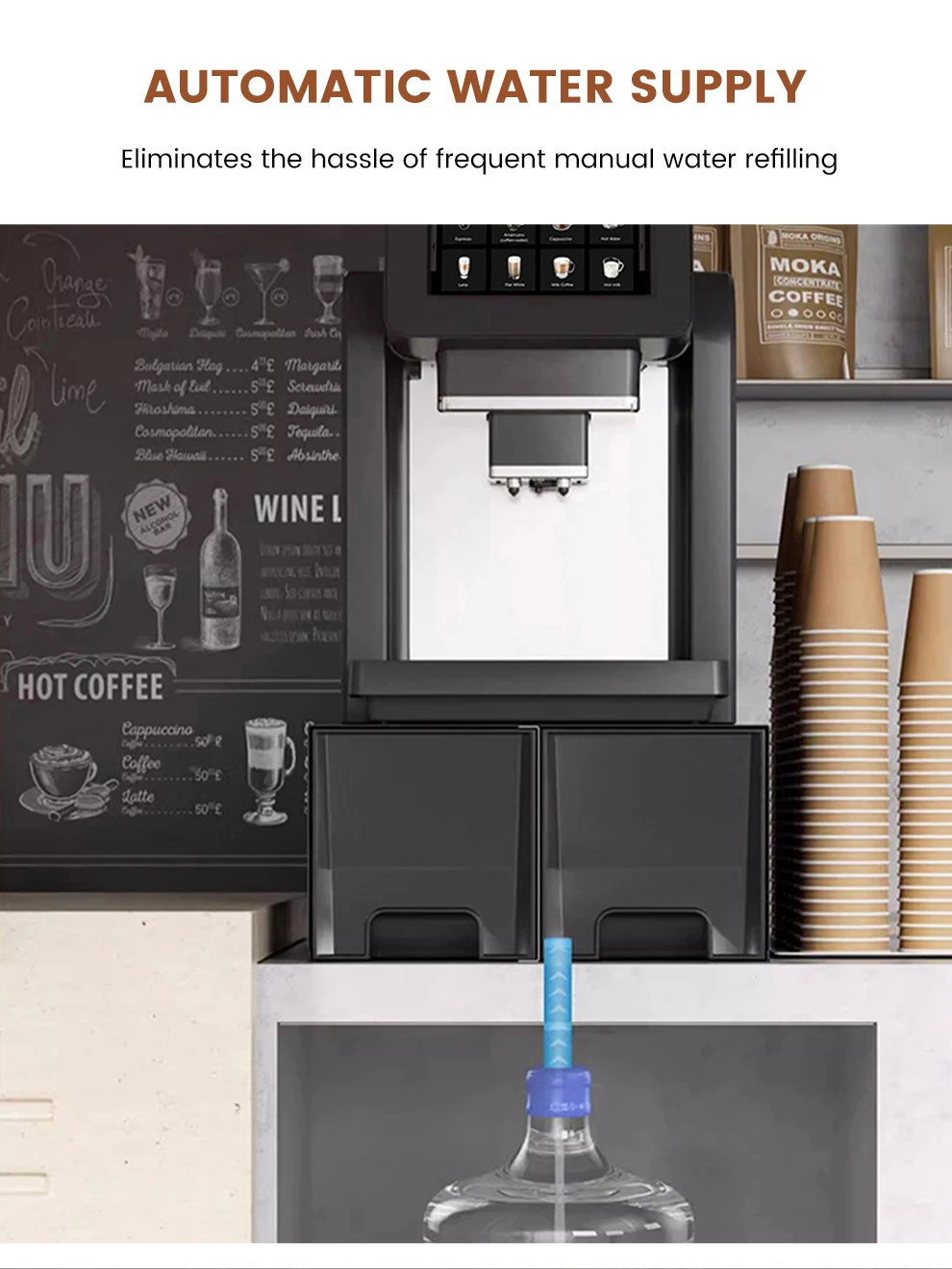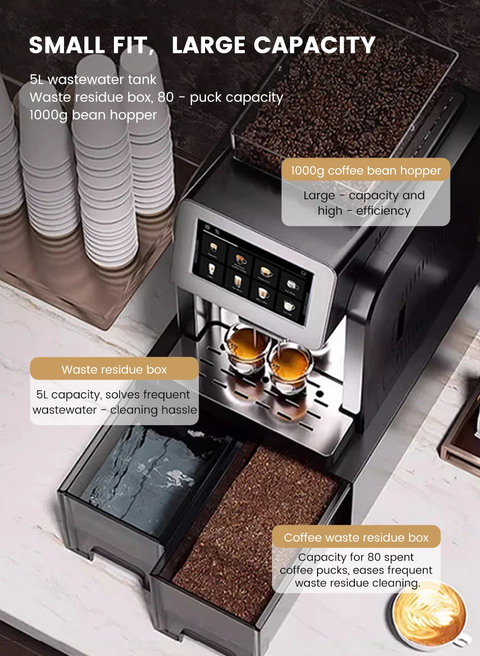 7" Large Screen Automatic Espresso Coffee Machine with Milk Frother, 21 Flavors, Smart Touch for Home & Office
