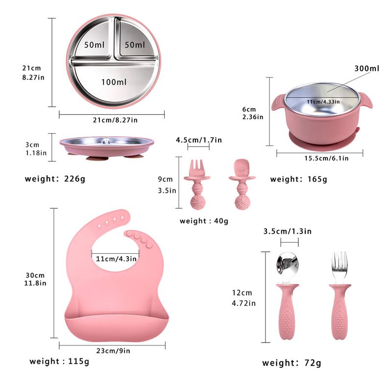 7-Pack Stainless Steel Cutlery Tray Baby Feeding Tray Removable Suction BPA Free Silicone Training Spoon Baby Newborn Supplies