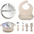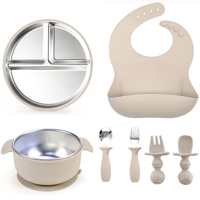 7-Pack Stainless Steel Cutlery Tray Baby Feeding Tray Removable Suction BPA Free Silicone Training Spoon Baby Newborn Supplies