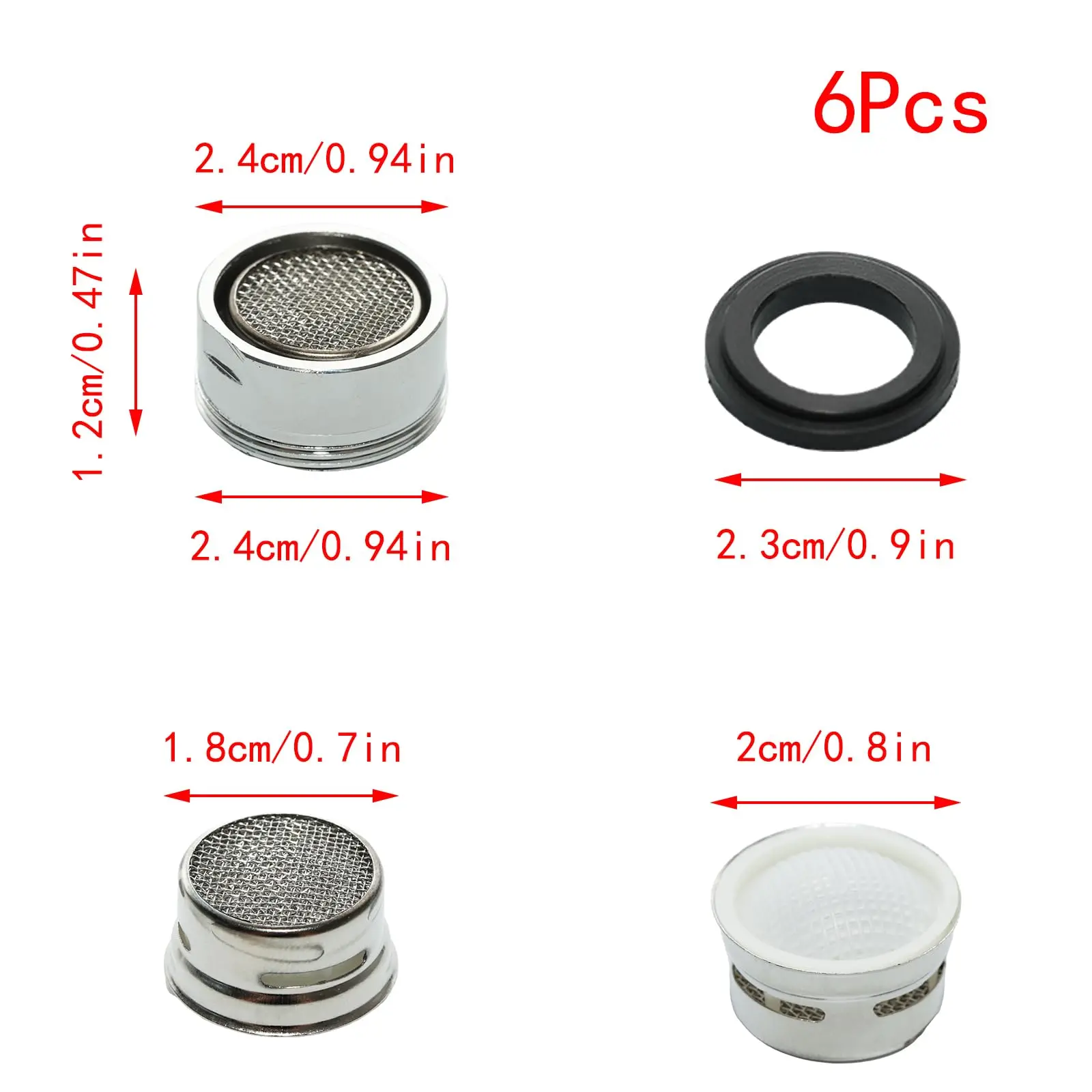 1.【About Package】: The package contains 6 pack universal kitchen faucet aerator replacement, external thread diameter 0.94 inch / 24 mm and 1 auxiliary wrench tool