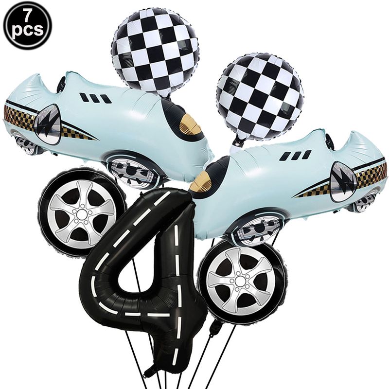 7 Pcs Race Car Birthday Balloons 40 Inch Racetrack Black Number 3 Balloon for 3st Birthday Race Car Theme Party Decor Supplies
