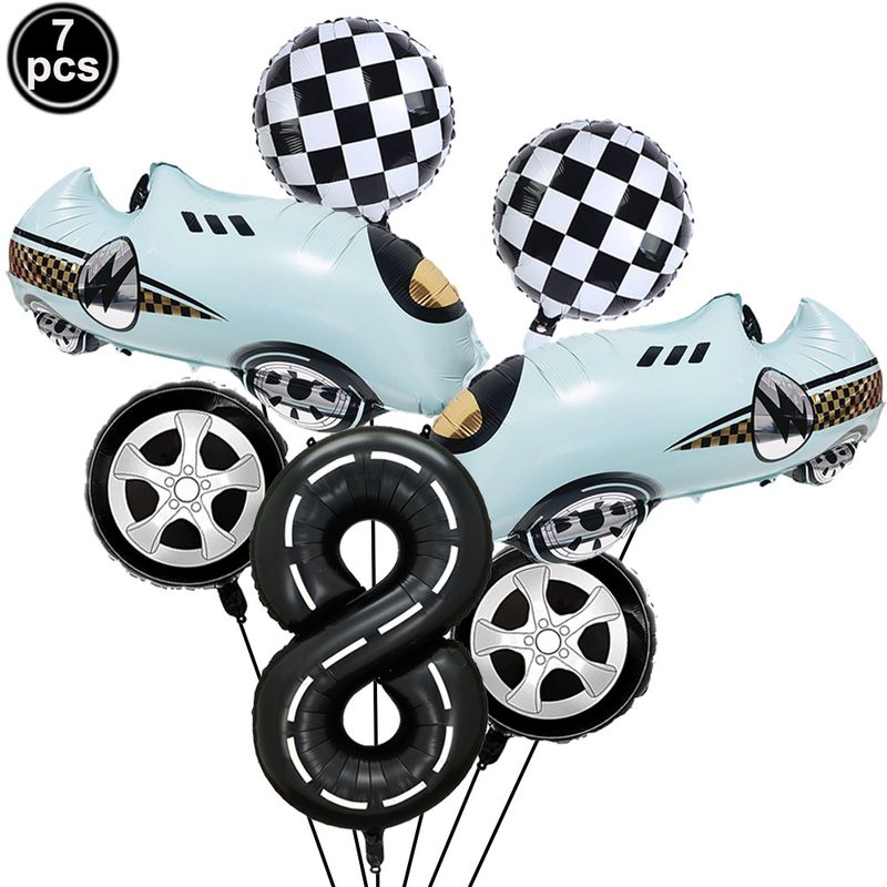 7 Pcs Race Car Birthday Balloons 40 Inch Racetrack Black Number 3 Balloon for 3st Birthday Race Car Theme Party Decor Supplies