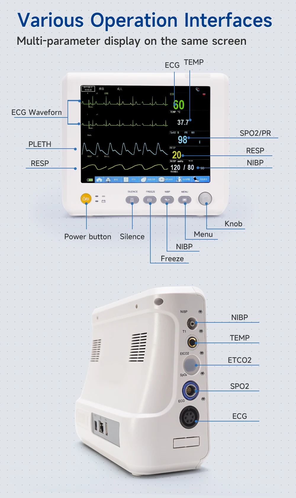 ECG/HR/PR/TEMP/RESP/NIBP/SPO2