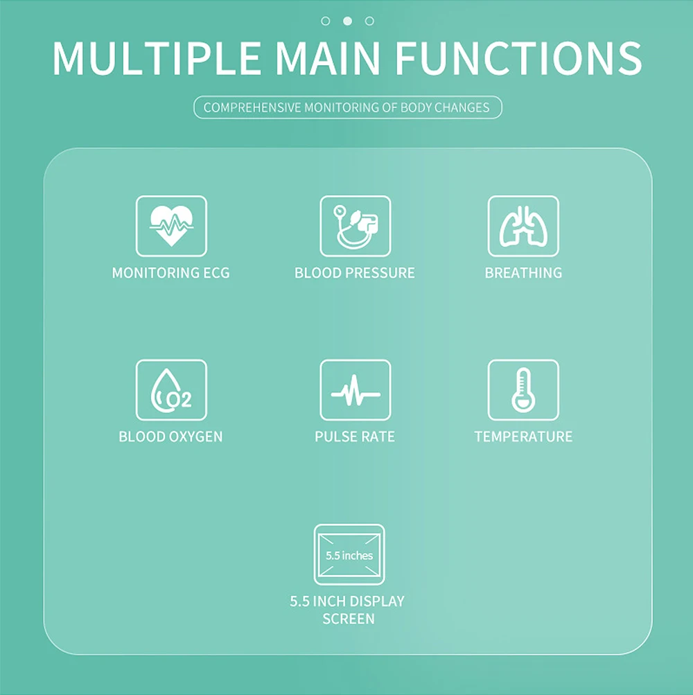 Routine functions: ECG, blood pressure, blood oxygen, body temperature, breathing monitoring
