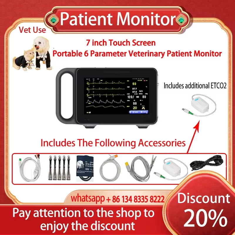 7/ 8/10 inch Screen Newborn adult/Vet use portable 6-parameter patient monitor vital signs monitor ECG/NIBP/PR/SPO2/RESP/TEMP