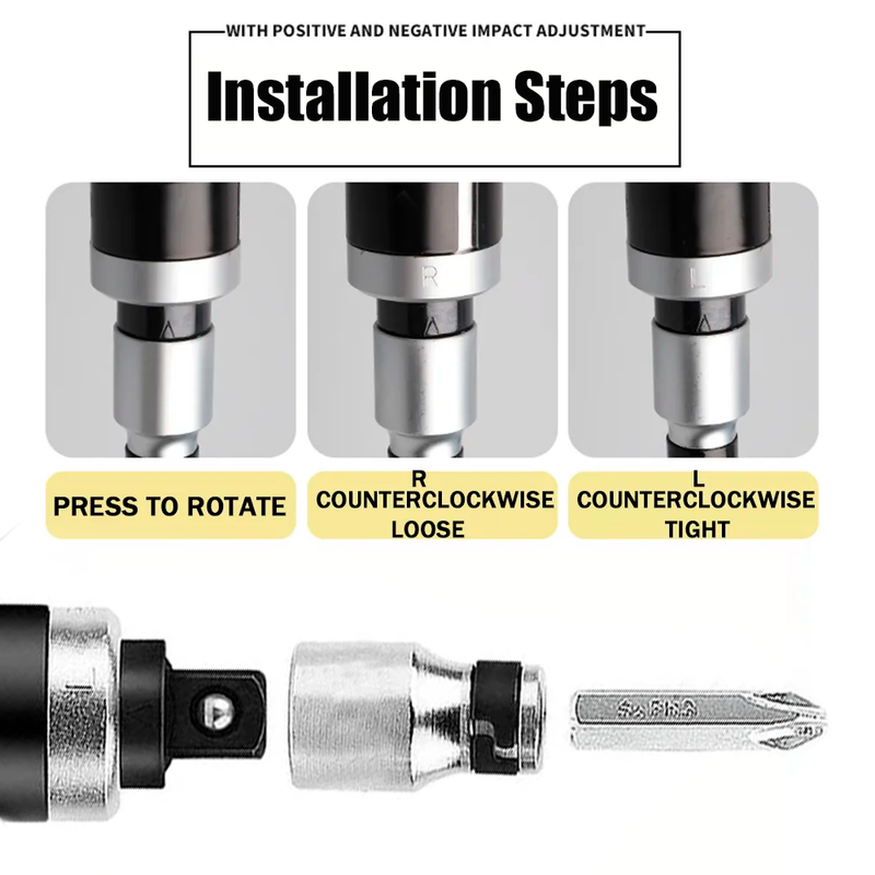 Crafted from premium alloy steel, this impact screwdriver withstands rugged use with a 1/2'' bit adapter. Its robust, anti-shock handle is built for heavy-duty environments, ensuring longevity.