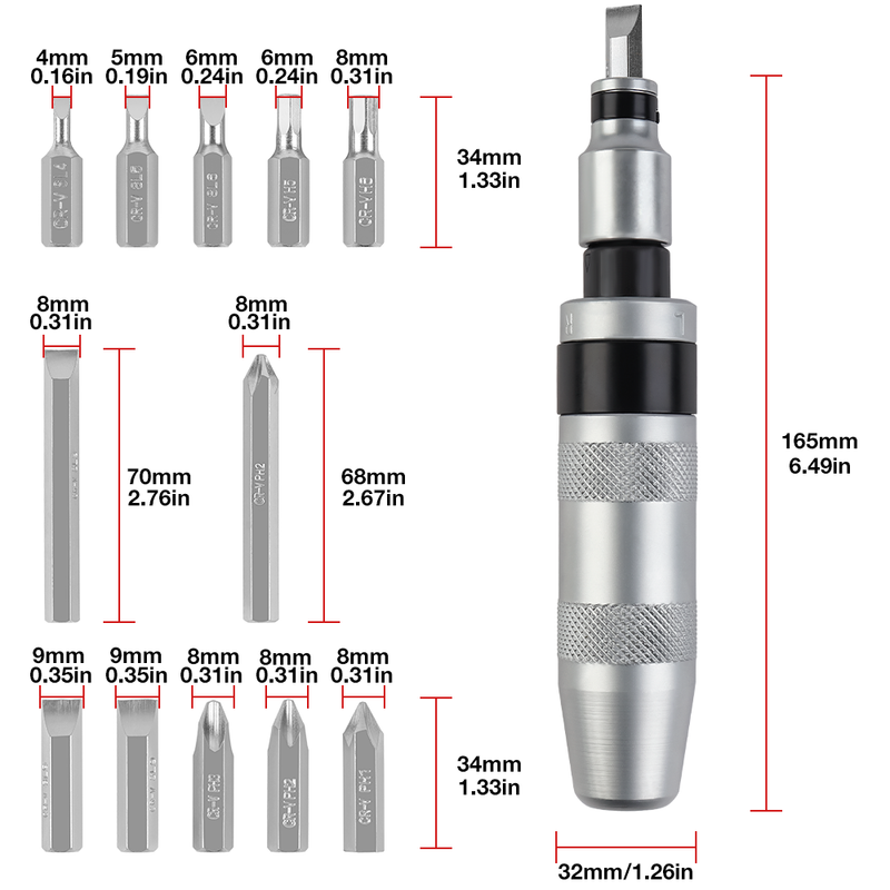 The Impact Screwdriver Set Includes: