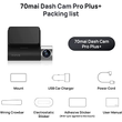 Front and rear driving recorder:Without rear camera, the driving recorder provides high resolution 1944P. Equipped with a 70mai RC06 rear camera, the 70mai driving recorder Pro Plus+ can achieve dual-channel video recording and all-round protection, allowing you to drive with peace of mind. In dual recording mode, this smart flat camera allows you to choose different resolutions
