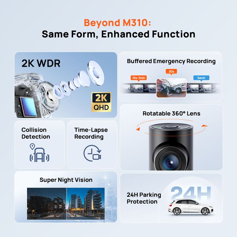 70mai M310 Plus 2K records in true 1440P QHD with a 143° wide view, capturing plates, signs, and critical details with clarity across multiple lanes.