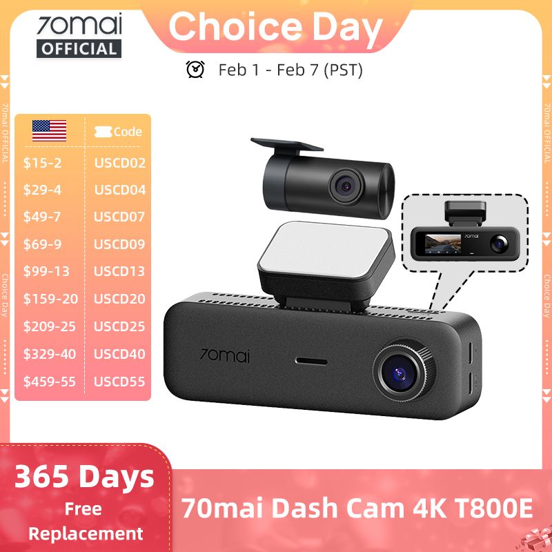 70mai t800e 3-Channel Front 4k + rear 1080p + interior 1080p HDR supercapacity GPS WiFi 6 70mai t800e dash cam voice control