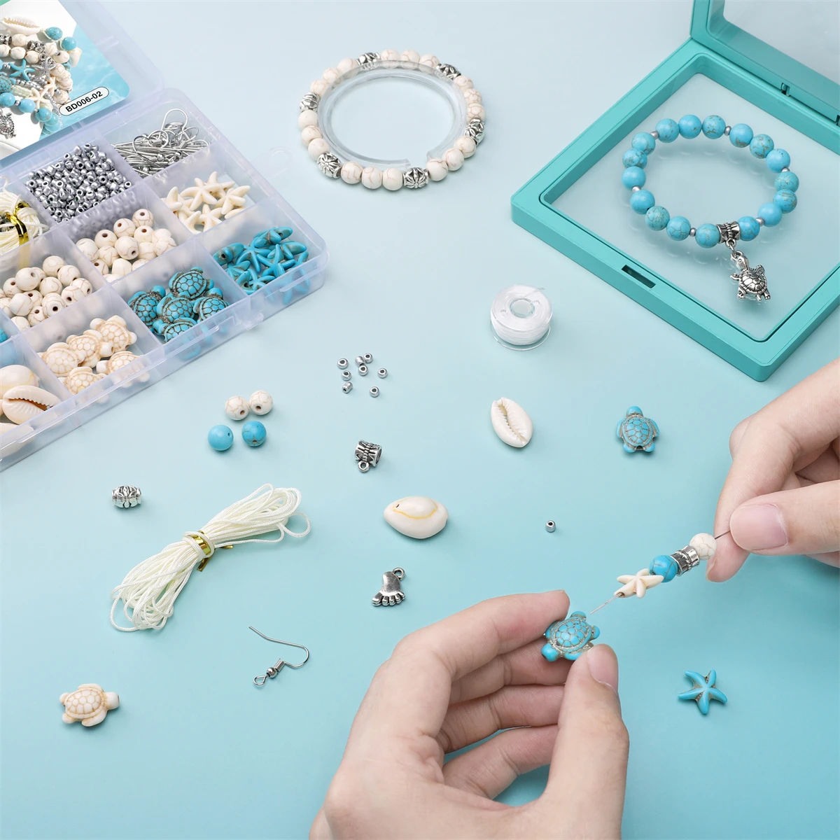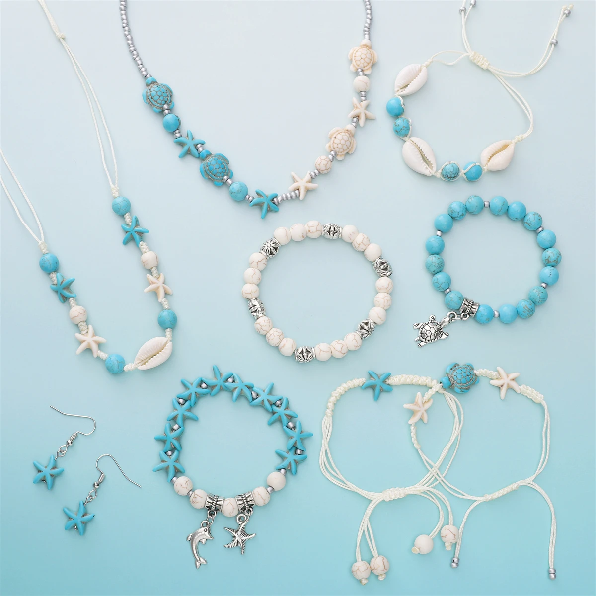 715Pcs Ocean Inspired Jewelry Making Set, Combining Turquoise And Starfish Charm Jewelry, Including Alloy Marine Life Bead Pendants And Earrings - Suitable For DIY Necklace, Bracelet, And Anklet Making