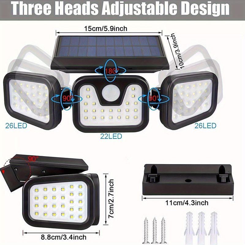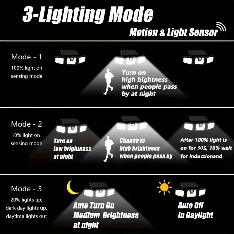 74 LED Solar Powered Motion Sensor Light Wall Mount Outdoor 3 Brightness Levels Front Door Garage Yard Pathway