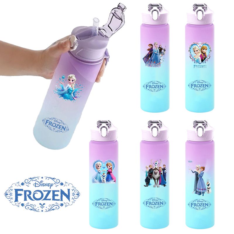 750ml Anime Frozen Elsa Water Bottle with Straw Boy Girl Outdoor Portable Sport Bottles Cups School Water Bottle Children Gift