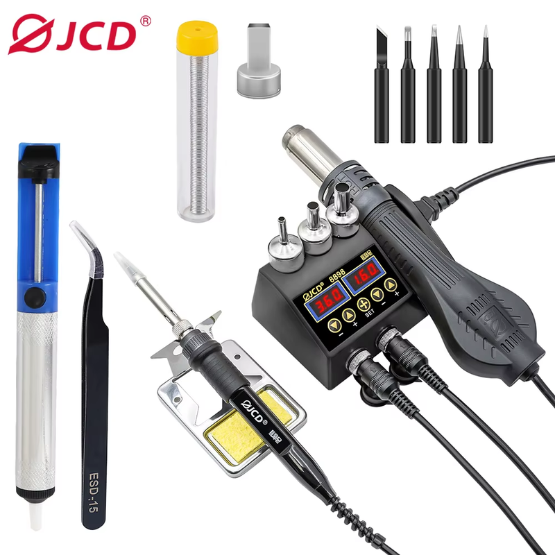 JCD 750W SMD Rework Soldering Station 2 in 1 hot air soldering iron LCD Digital display welding station for BGA PCB IC Repair 8898