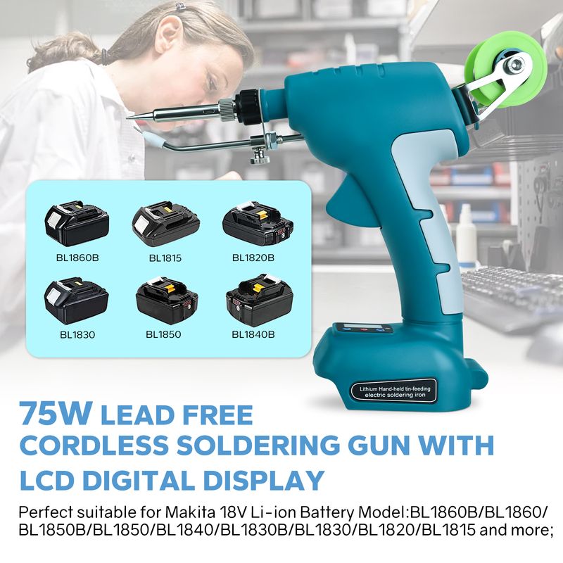 1. This 75W 18-20V battery-powered welding kit is made of high quality ceramic heating elements that heat up to 460°C in 30 seconds. It has a constant temperature function, which can improve your work efficiency.