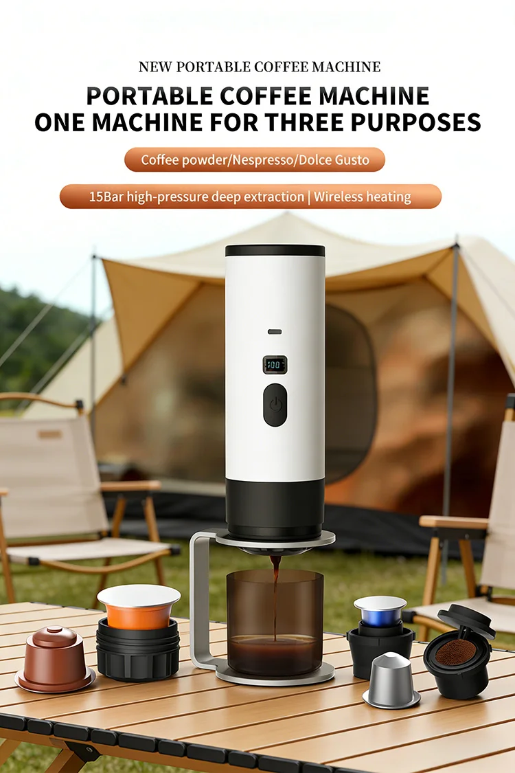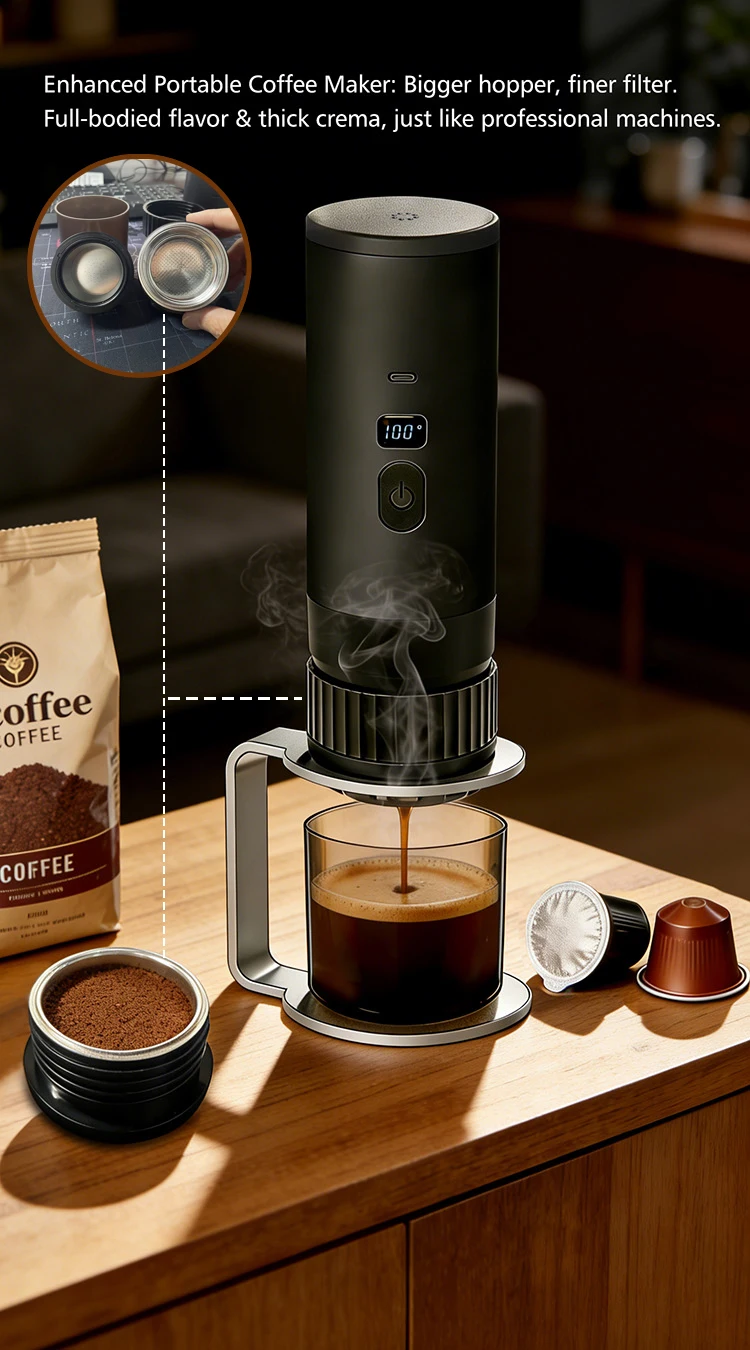 7800mAh Long-Lasting 3-in-1 Portable Coffee Maker, Electric Capsule Coffee Machine for Car, Travel & Camping