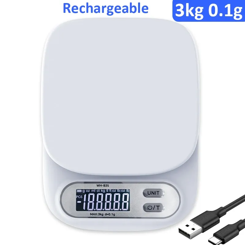 7kg 1g 3kg 0.1g Digital Kitchen Scale Home LCD Electronic Scales Battery/Rechargeable Weighing Balance Multi-Unit Weighing Scale