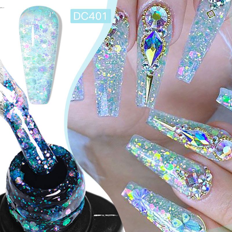 7ml Flowery Glitter Sequins Gel Nail Polish Shiny Sparkling Color Semi Permanant Soak Off Manicure Nail Art Varnish