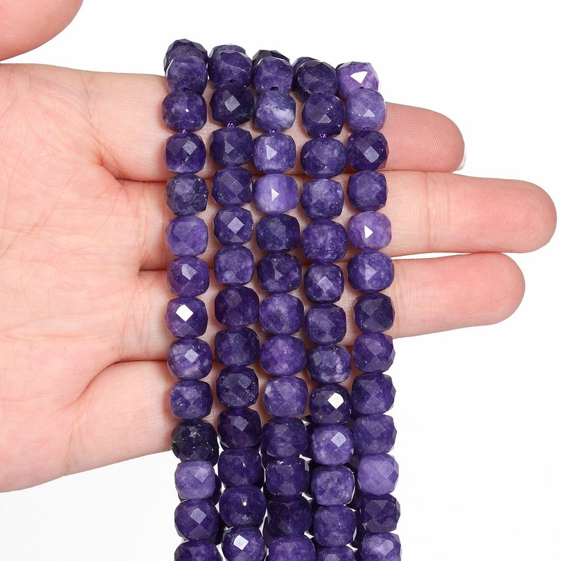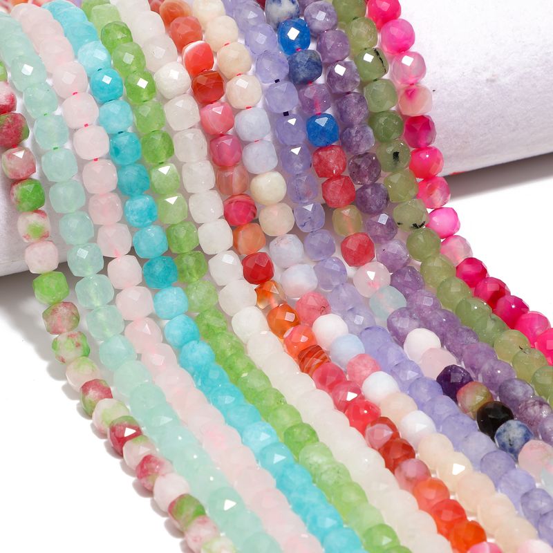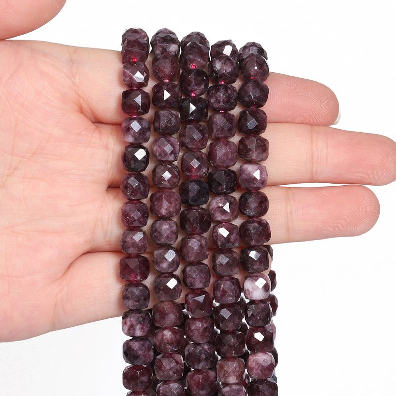 7mm AAA Faceted Cube Natural Stone Tourmaline Aquamarine Garnet Angelite Beads Spacer Beads For Jewelry Making DIY Bracelet 15''