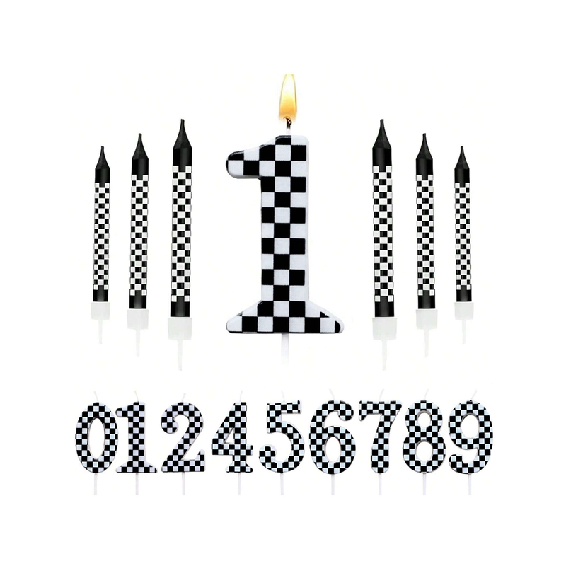 7Pcs Birthday Candles Set,Cake Numeral Candles,Racing Cars Themed Birthday Candles for Cake Candle Checkered Decoration