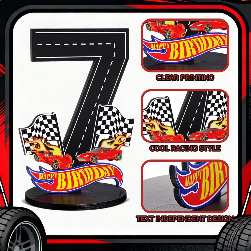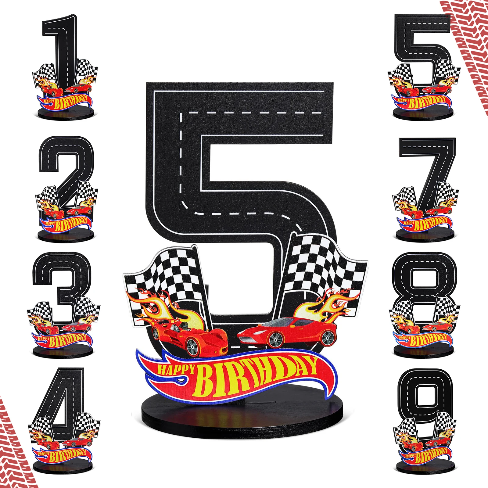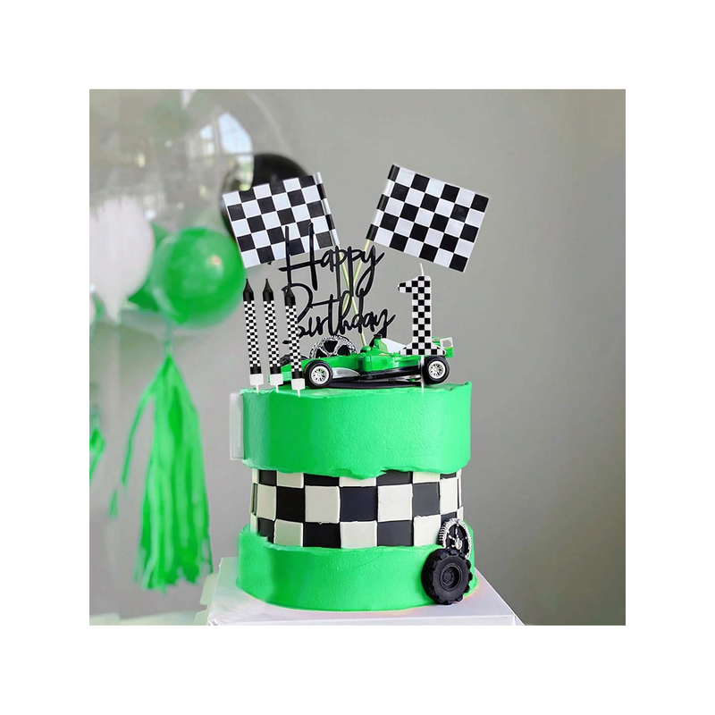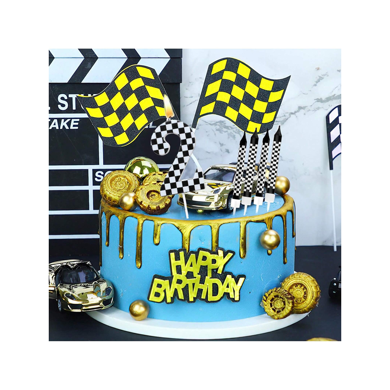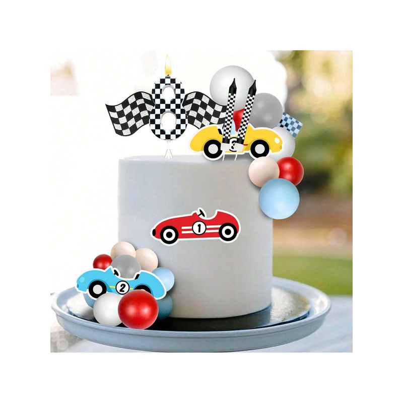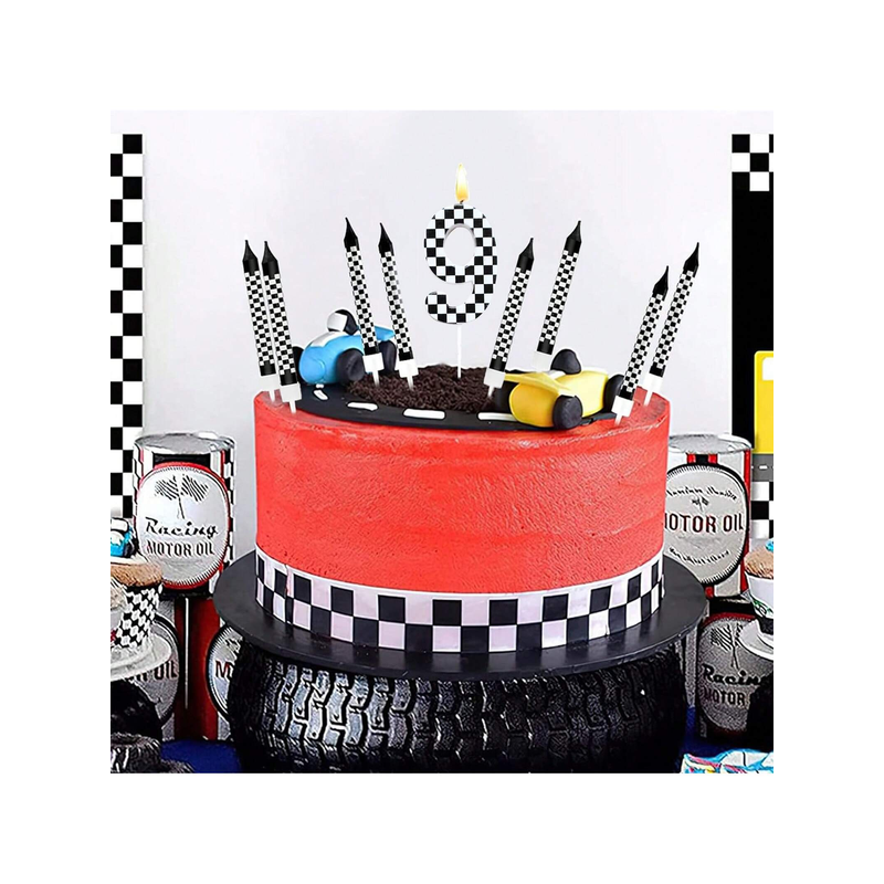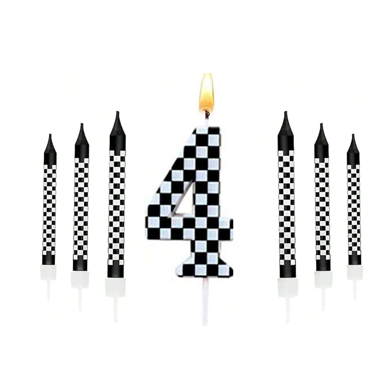 7Pcs Birthday Candles Set,Cake Numeral Candles,Racing Cars Themed Birthday Candles for Cake Candle Checkered Decoration