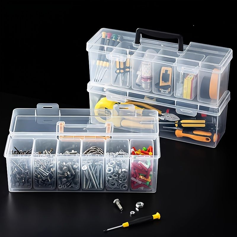 7pcs Multi-functional household hardware tool box, transparent portable tool storage box, wrench and screw parts organizing box