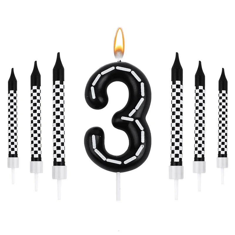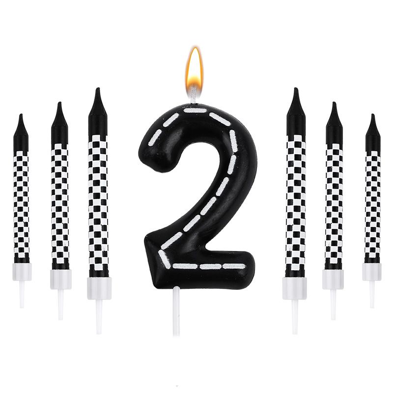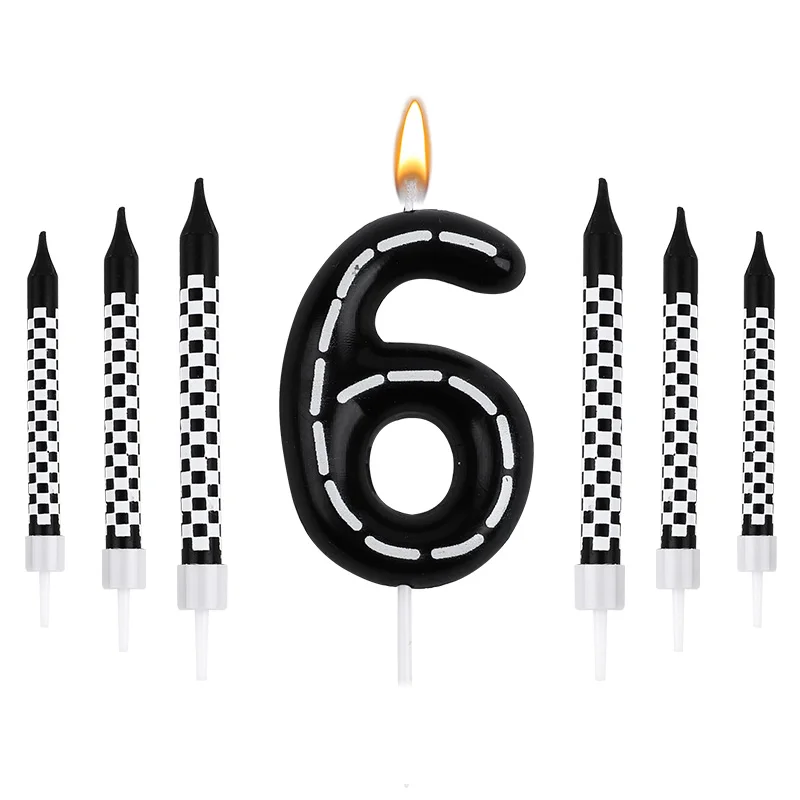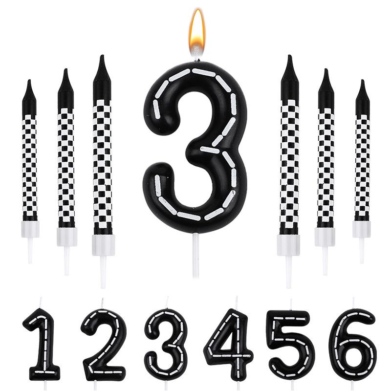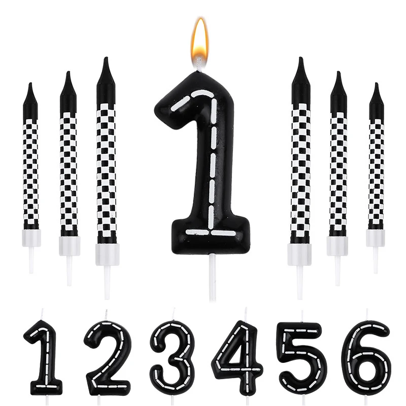 7Pcs/set Racing Cars Birthday Number Candles Black White Checkered Themed Cake Topper Kids Boys Birthday Party Decoration Favors
