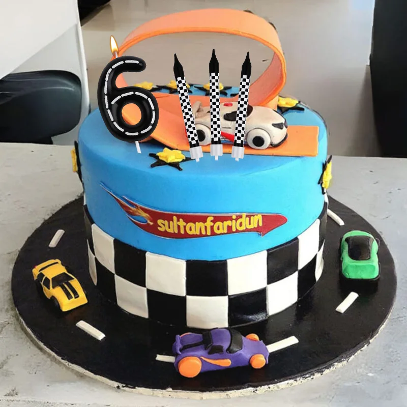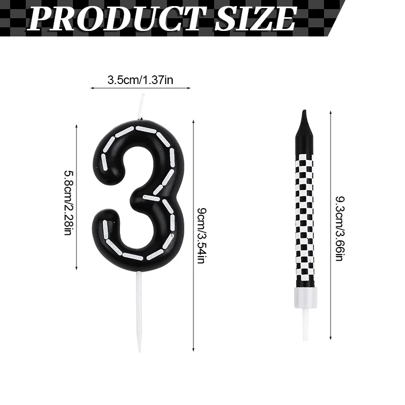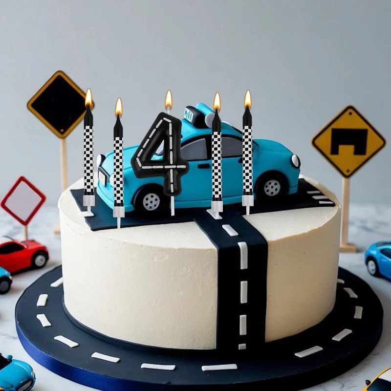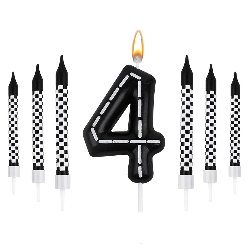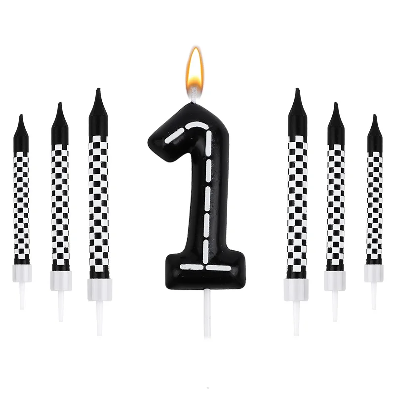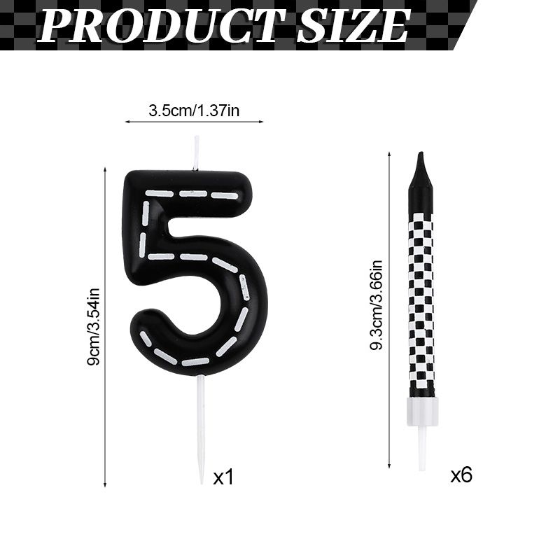 7Pcs/set Racing Cars Birthday Number Candles Black White Checkered Themed Cake Topper Kids Boys Birthday Party Decoration Favors