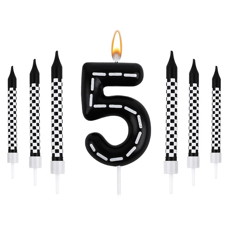 7Pcs/set Racing Cars Birthday Number Candles Black White Checkered Themed Cake Topper Kids Boys Birthday Party Decoration Favors