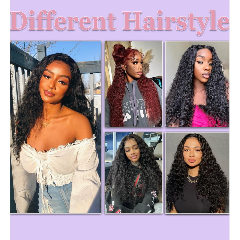 7x6 Deep Wave Human Hair Pre Plucked Curly Natural black Color Wigs Glueless Wig HD Transparent Lace Frontal Wigs High Density