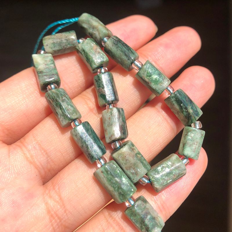 Items Name:8x11mm Natural Emerald Cylinder Shape Stone Beads Citrine Moonstone Quartz Long Column Spacer Beads for Jewelry Making 7.5"