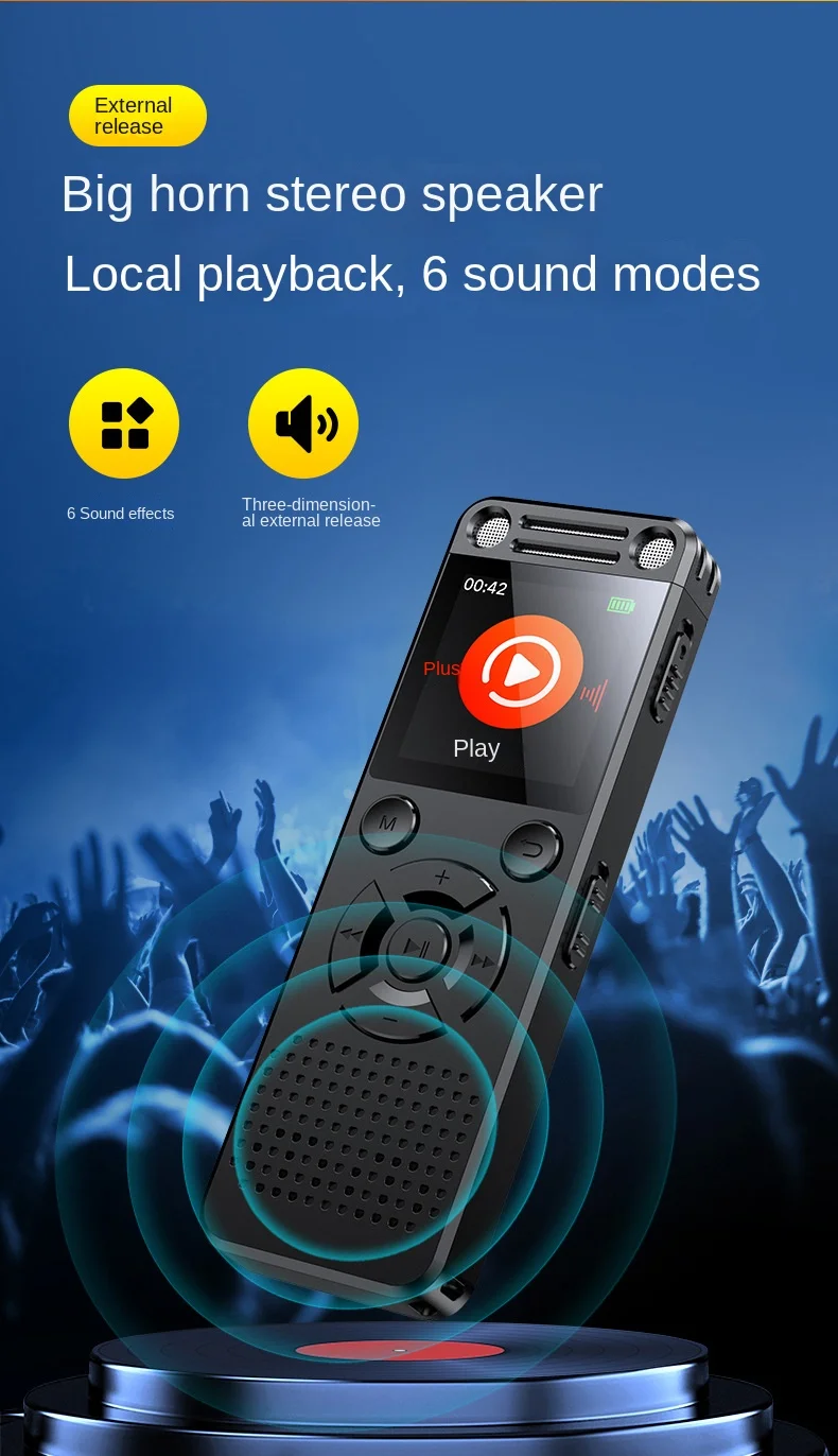 The recorder's one - click noise reduction recording function makes it incredibly easy to use. You can also set it to save recordings in segments, making it convenient to organize your audio. The large - speaker stereo playback with 6 sound effect modes provides an immersive listening experience right on the device.