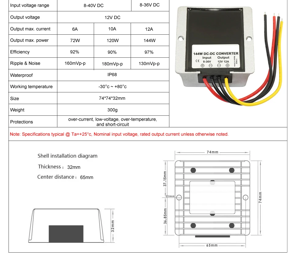 8-40V to 13.8V 12V 30A 25A 20A 10A 6A 3A DC DC Power Converter Regulator Buck Boost for Voltage Stabilizer Cars Solar RoHS CE