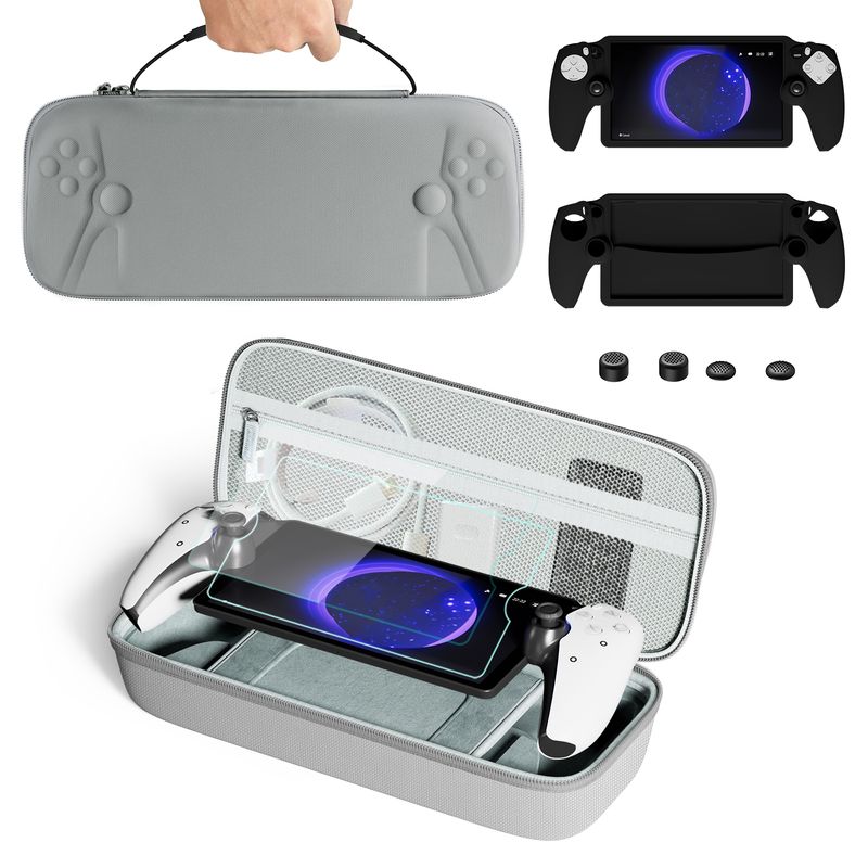 8-in-1 Accessories for PlayStation Portal – PS5 Carrying Case, Silicone Protective Cover, 2 Screen Protectors & 4 Thumb Grips