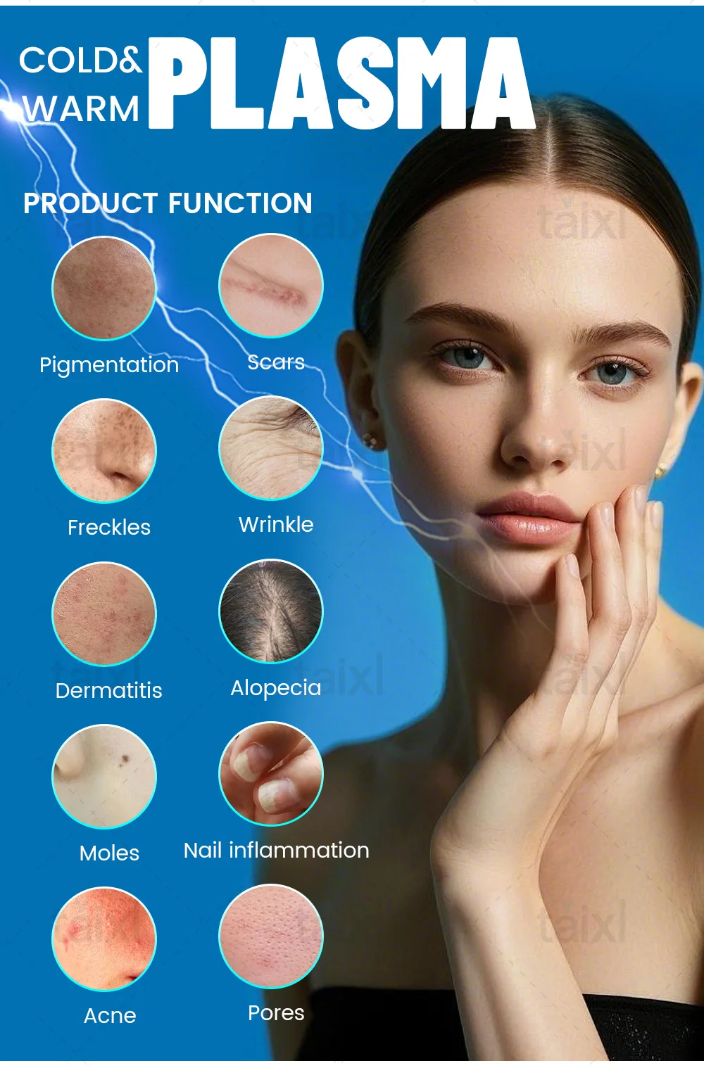 8-in-1 Hot Cold Plasma Beauty Device High-definition Whitening Skin Rejuvenation Acne Wrinkle Scar Removal Care.