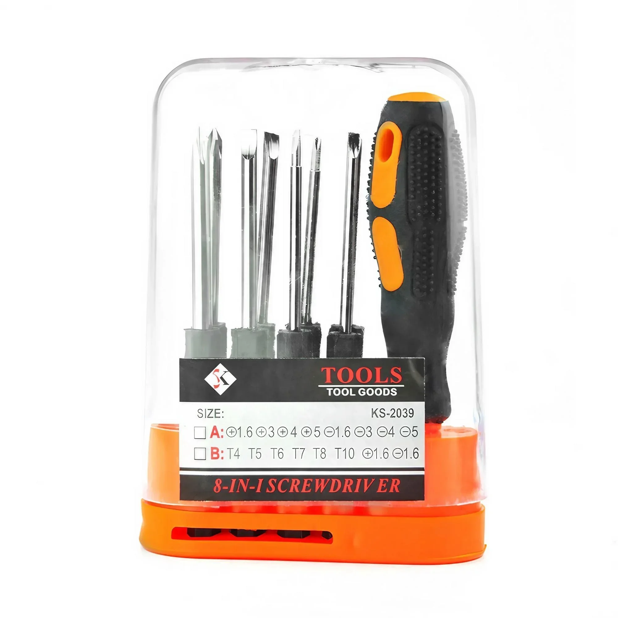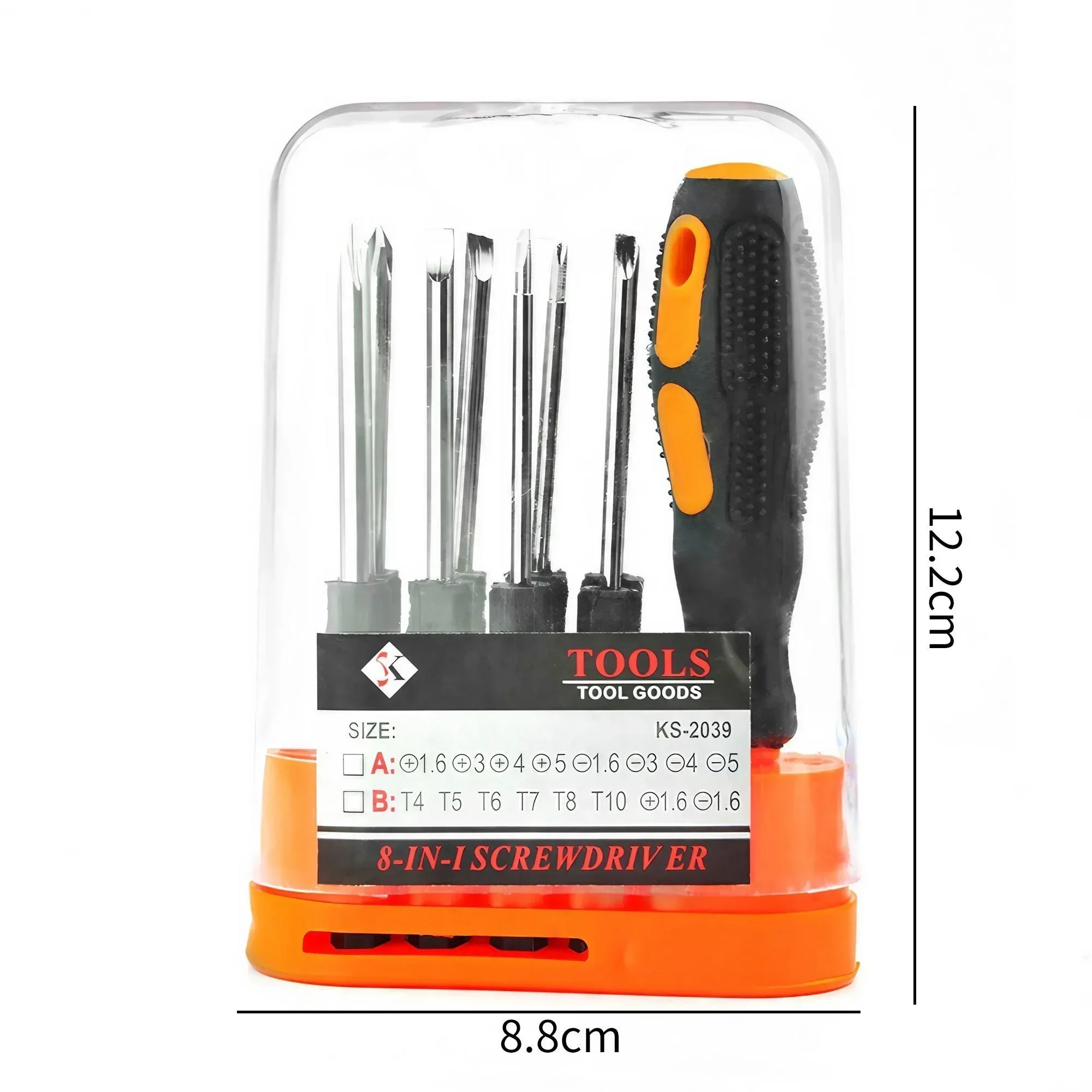 This 8-in-1 screwdriver set is an ideal tool for mobile and computer repairs, equipped with various screwdriver heads suitable for different screw sizes and types.