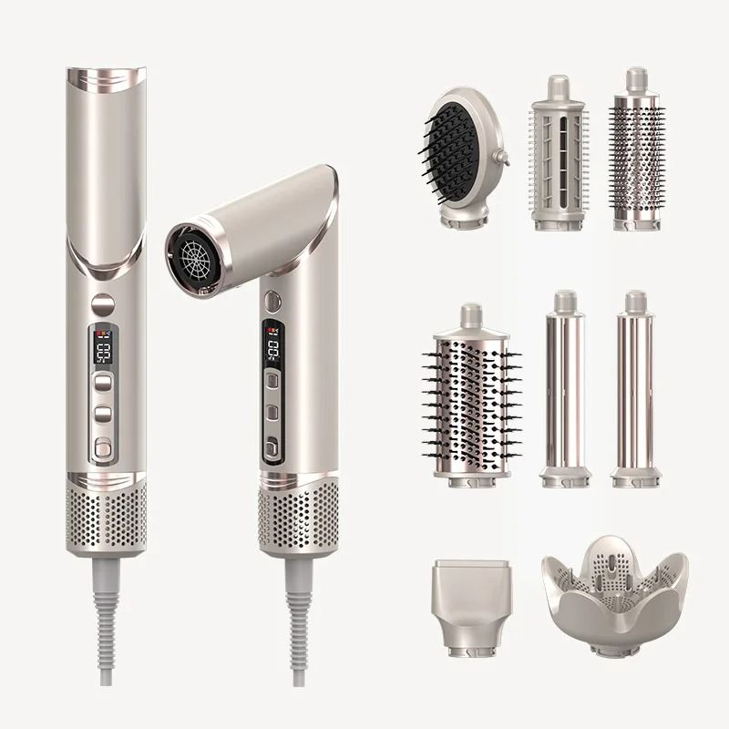 8-in-1 Negative Ion Hair Dryer & Air Curling Iron Set, Multi-Function Hot Air Brush Hair Styling Tool. Anti-frizz ionic care, co