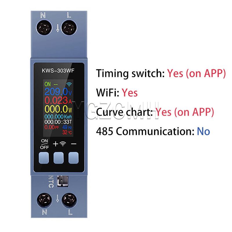 1. Tuya WiFi(only available on 303WF model), single-phase rail type, eight-in-one digital display: