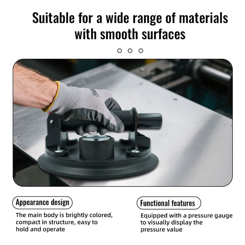 This is a kind of quality 8-inch vacuum hand-pump single-claw sucker, firm and 220kg bearing capacity. Quality rubber-suction, with strong suction, strong practicability and durability. Press operation, deep sealing-edge, strong sealing, no leakage. Thickening air-bleed-valve can efficient protect disc body. Wide applications, it can be used to move glass, tile, stone and other objects. You can have a try.