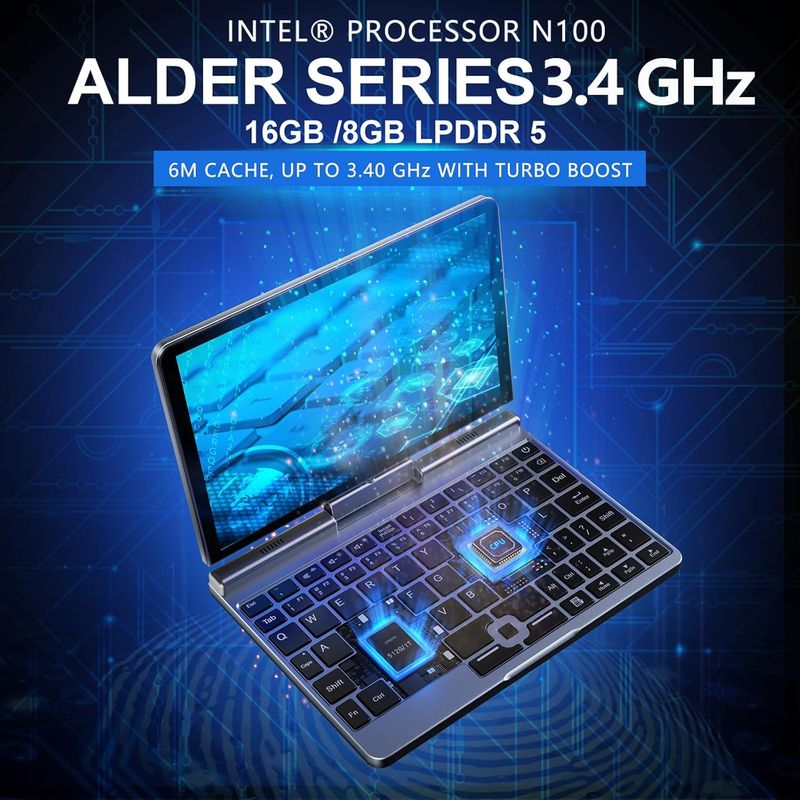 8 Inch Mini Laptop windows 11 Micro Portable Touch Screen Notebook N150 12GB+1TB IPS Netbook Win 11 Pro Mini PC Micro Co
