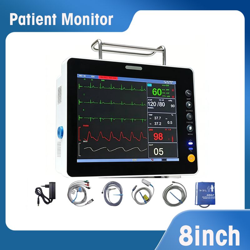 8 inch Screen Portable Multi-Parameter Human/Vet Use Patient Monitor Vital Signs Monitor optional for capnograph ETCO2 LCD