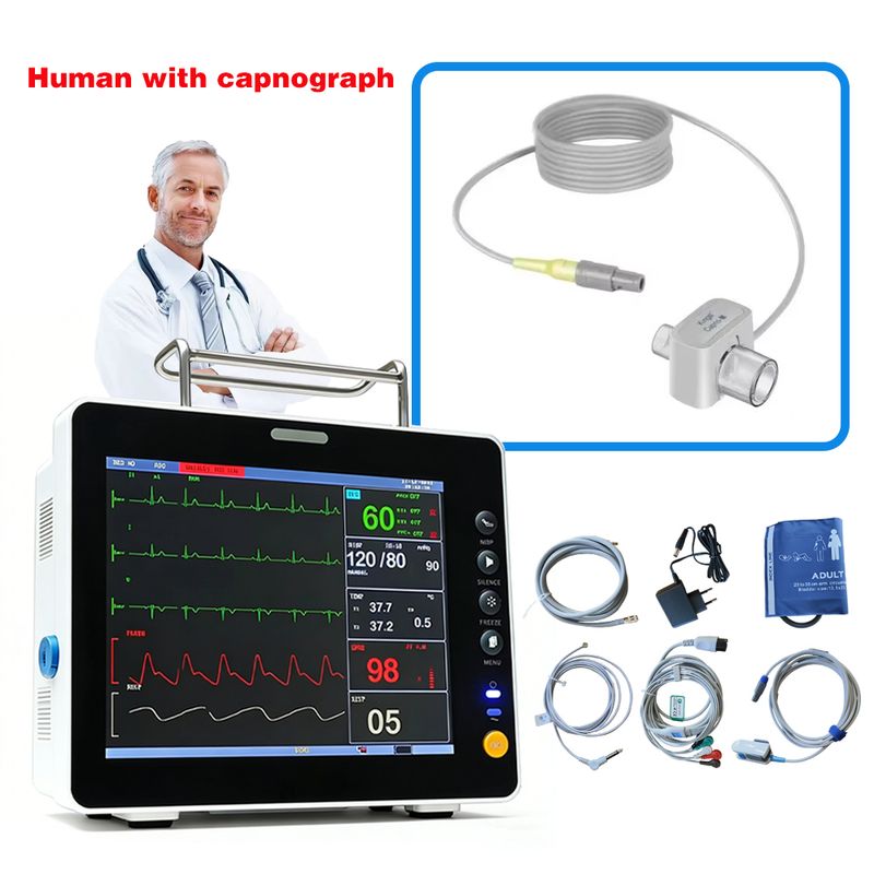 8 inch Screen Portable Multi-Parameter Human/Vet Use Patient Monitor Vital Signs Monitor optional for capnograph ETCO2 LCD