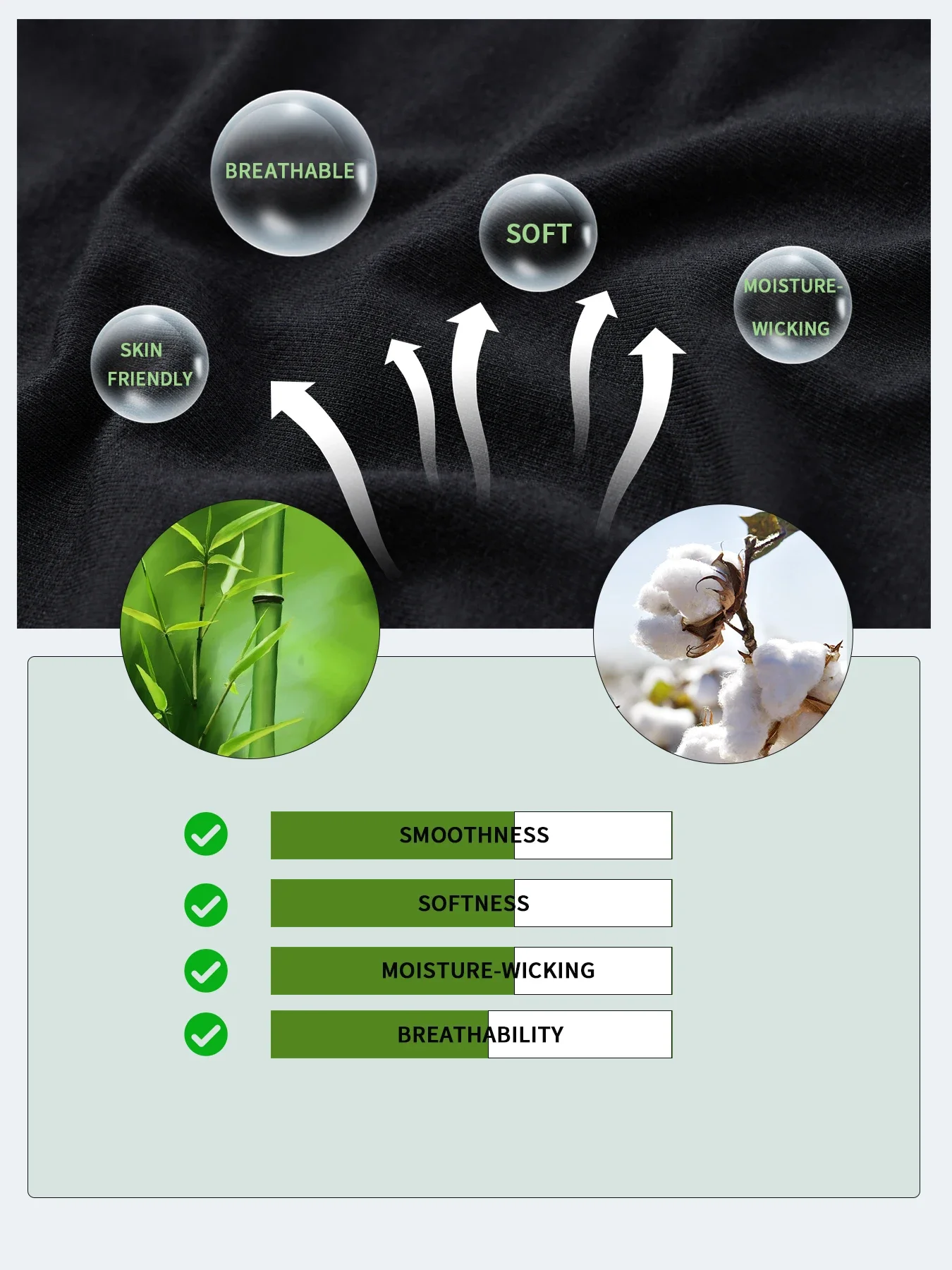 Bamboo fiber has good air permeability, instant water absorption, strong abrasion resistance and good dyeing properties.