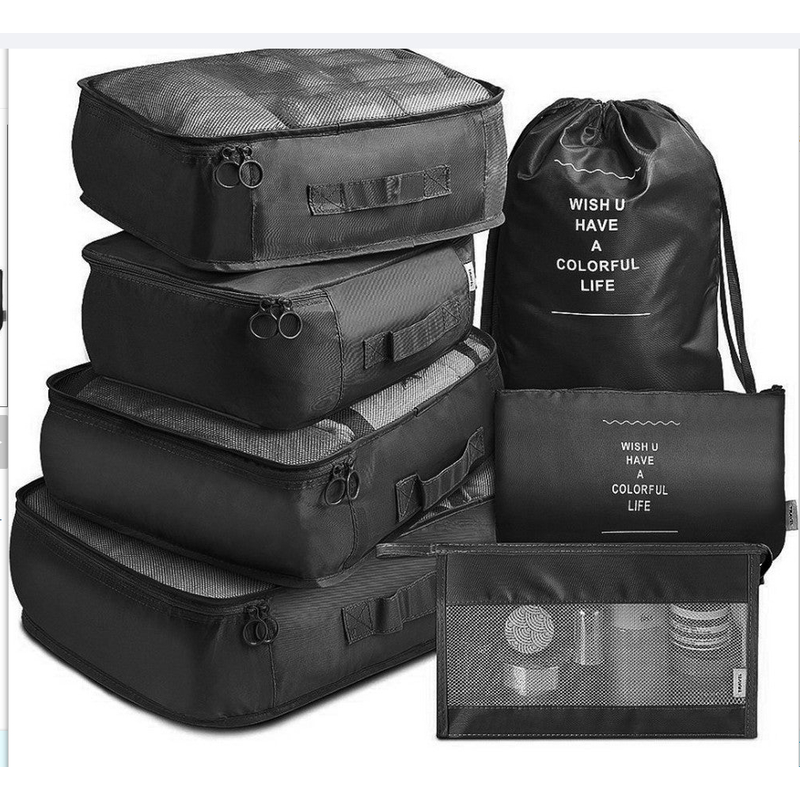 8-piece Set Luggage Divider Bag Travel Storage Clothes Underwear Shoes Organizer Packing Cube Bag Black 7piece set