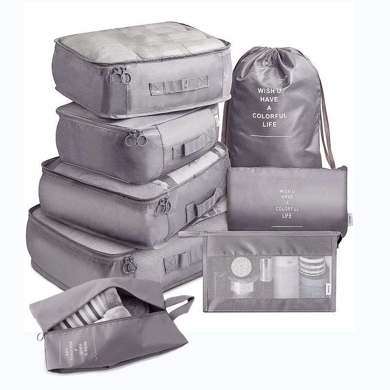8-piece Set Luggage Divider Bag Travel Storage Clothes Underwear Shoes Organizer Packing Cube Bag Gray 8 piece set